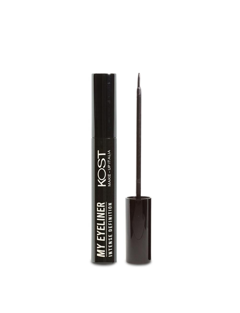 Liquid eyeliner with a bristle applicator that allows for a precise line with adjustable thickness.